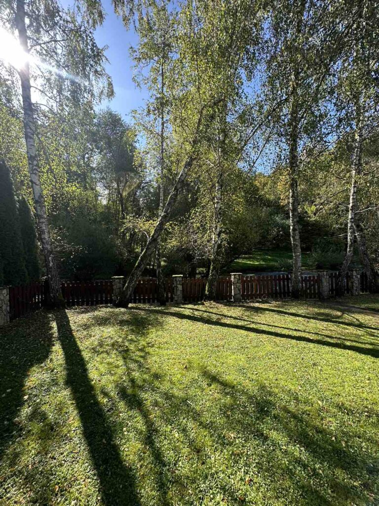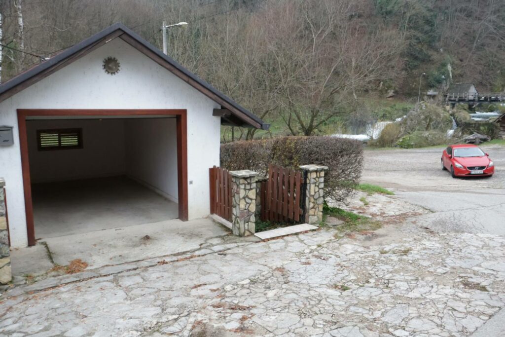 Zelenilo okruženo čempresima i brezama pruža mir i privatnost. Neposredan pogled na rijeku i slapove čini ovu nekretninu pravim prirodnim draguljem.